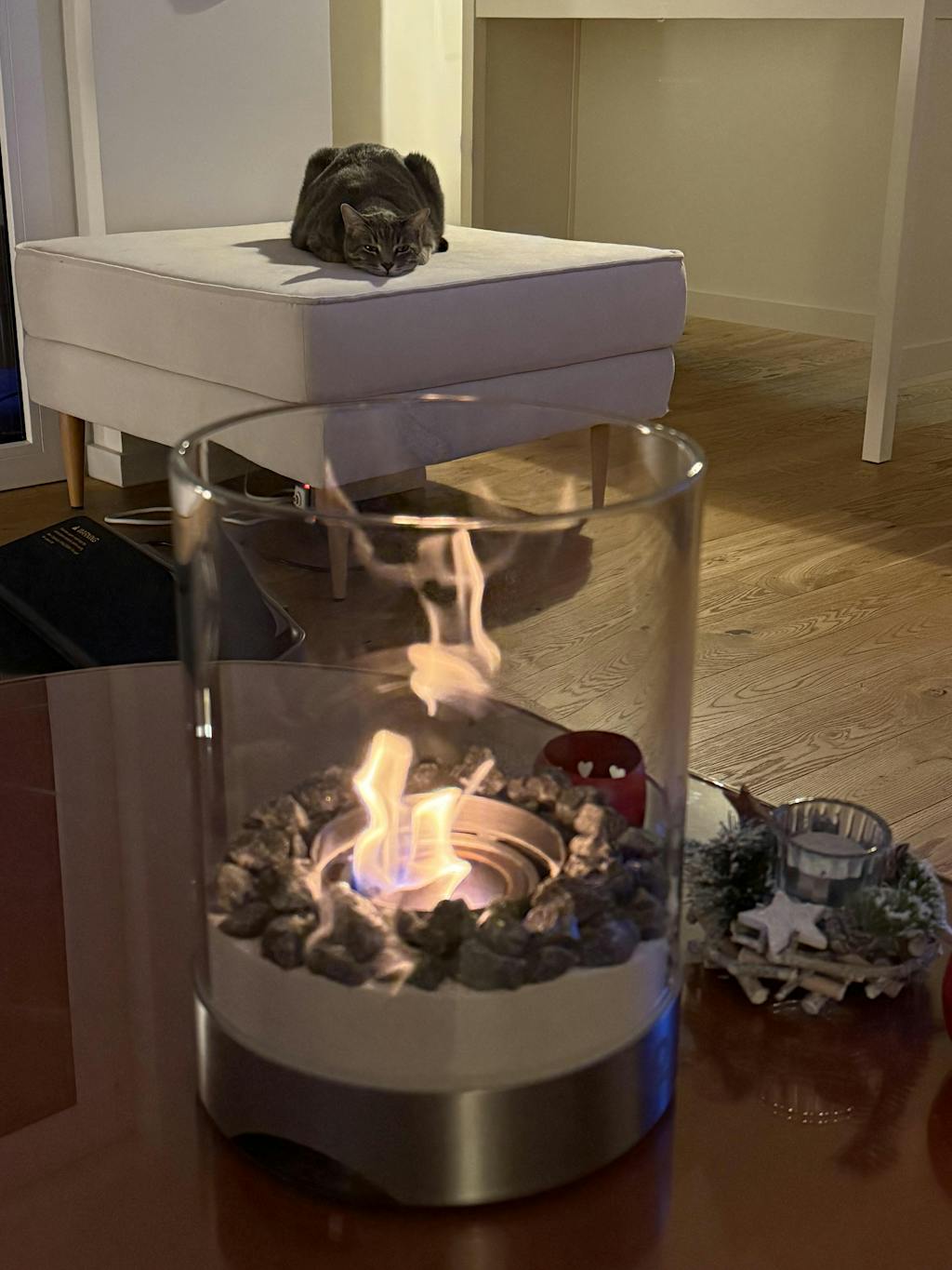 Alles super, ärgere mich, dass ich mir den Kamin nicht schon vor Monaten gekauft habe. Das ist echt hygge!!!! Ich bin begeistert und jeder der ihn sieht ist es ebenfalls.